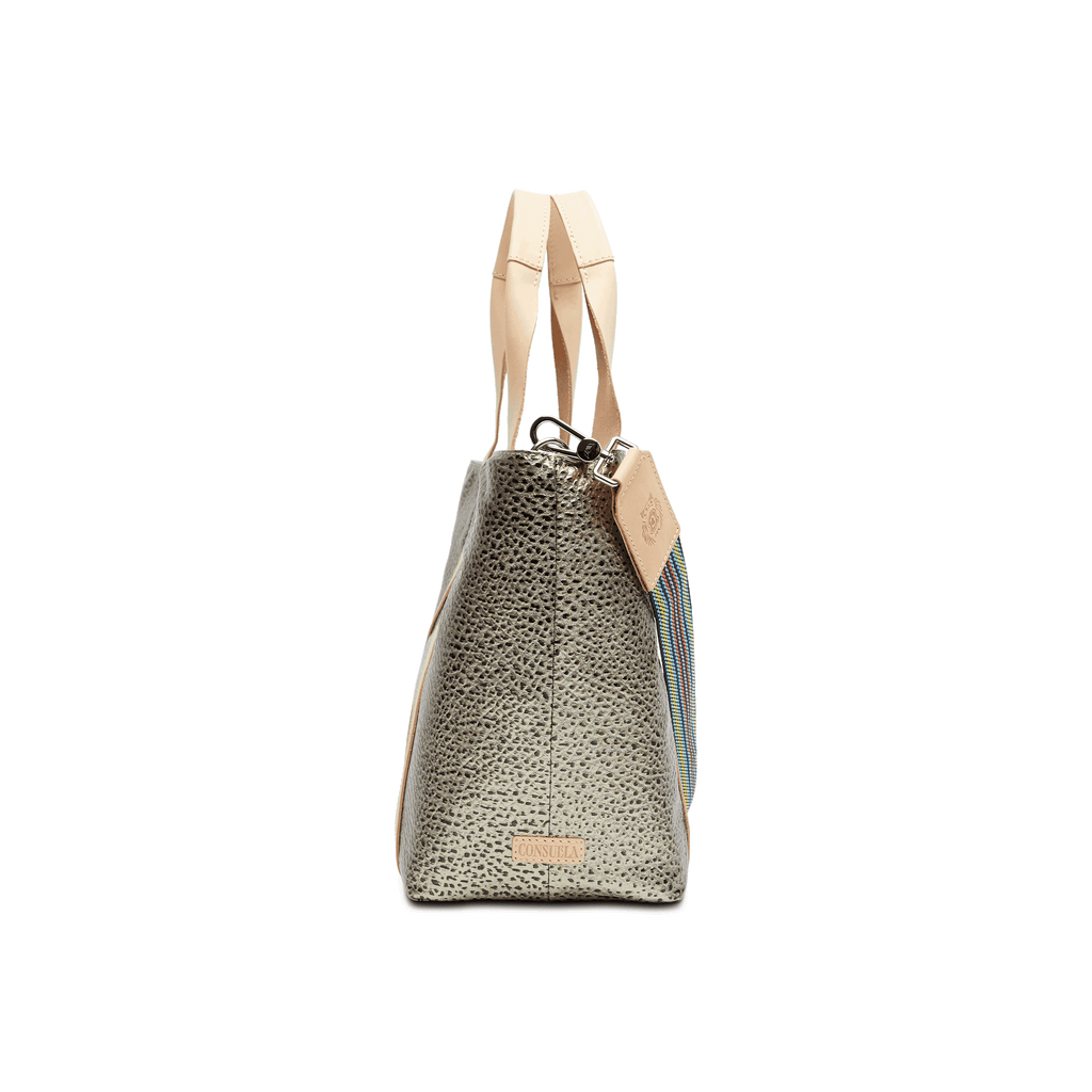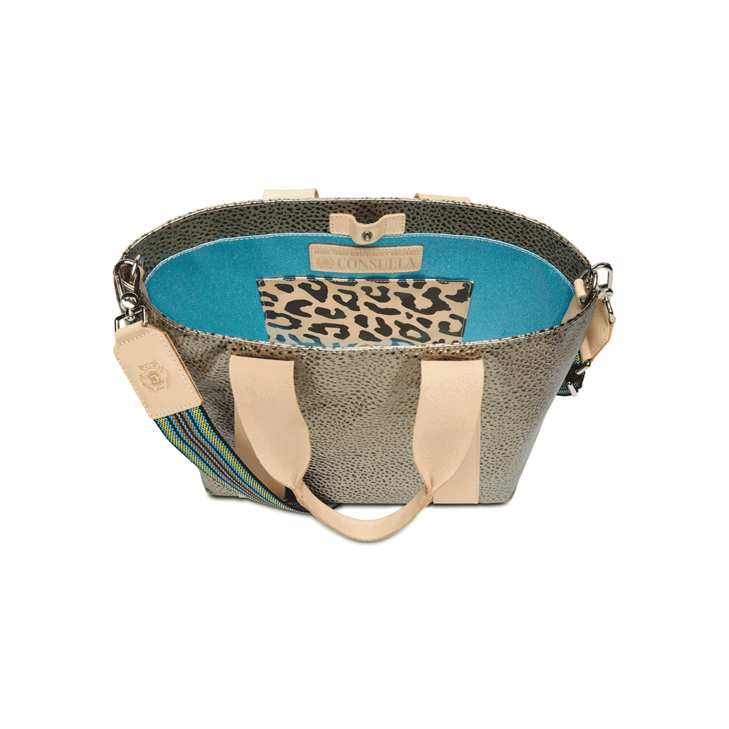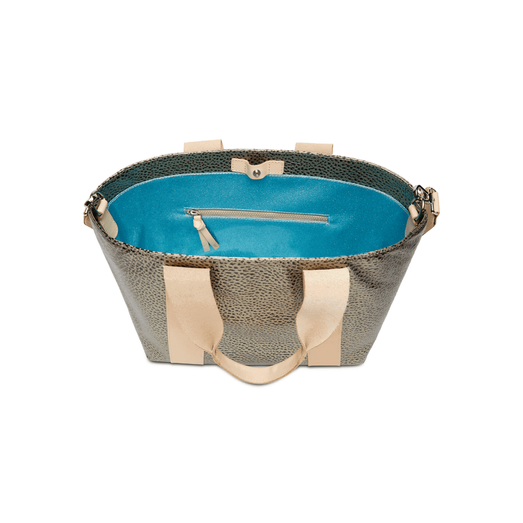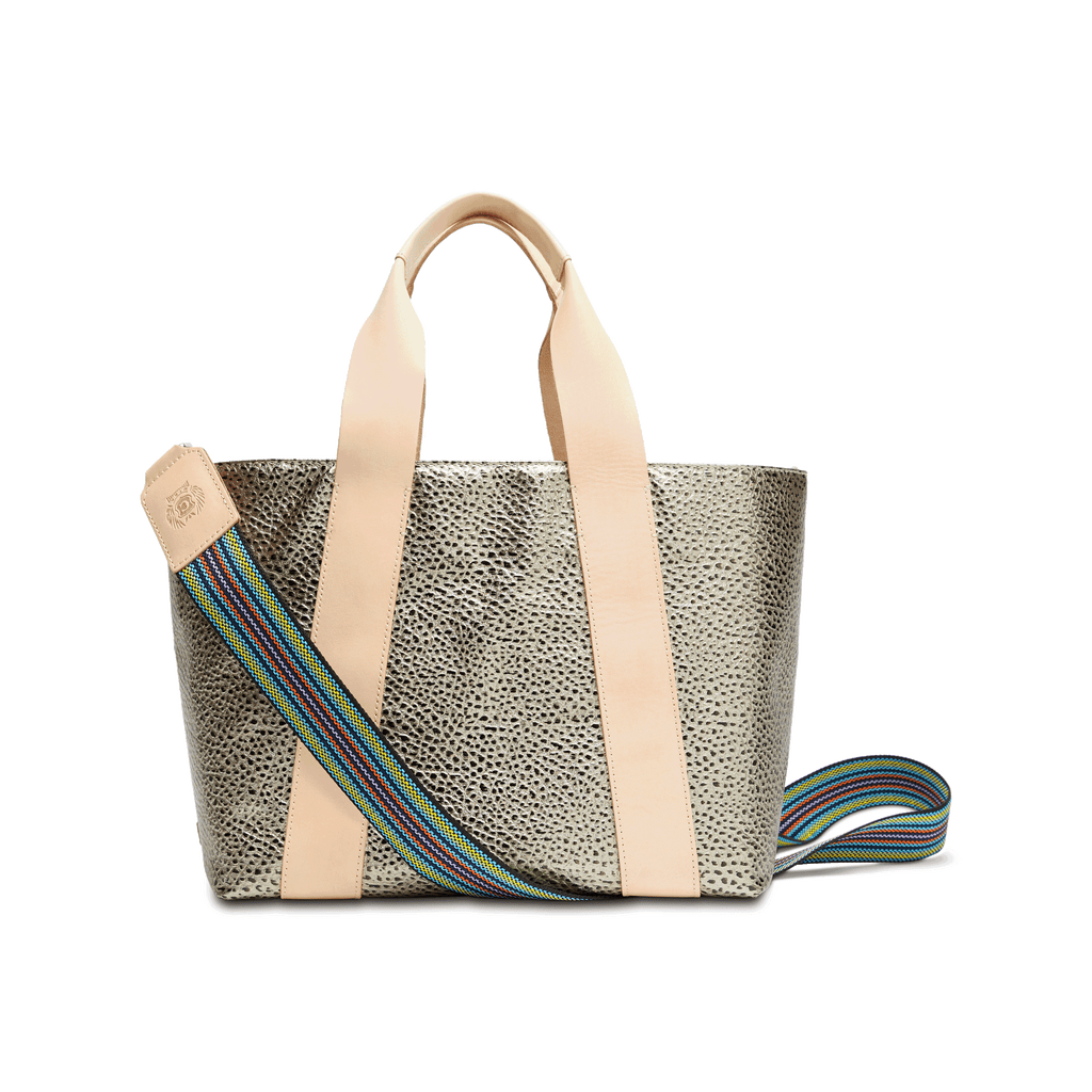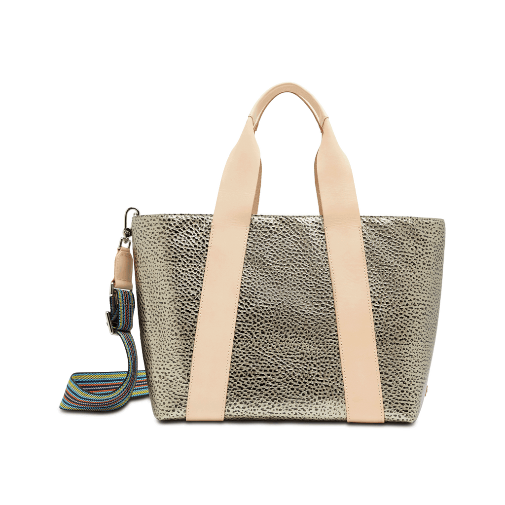 The Carryall was crafted with versatility in mind. This tote features a sturdy silhouette, interior pockets, comfortable leather handles and an adjustable crossbody-length webbing strap.