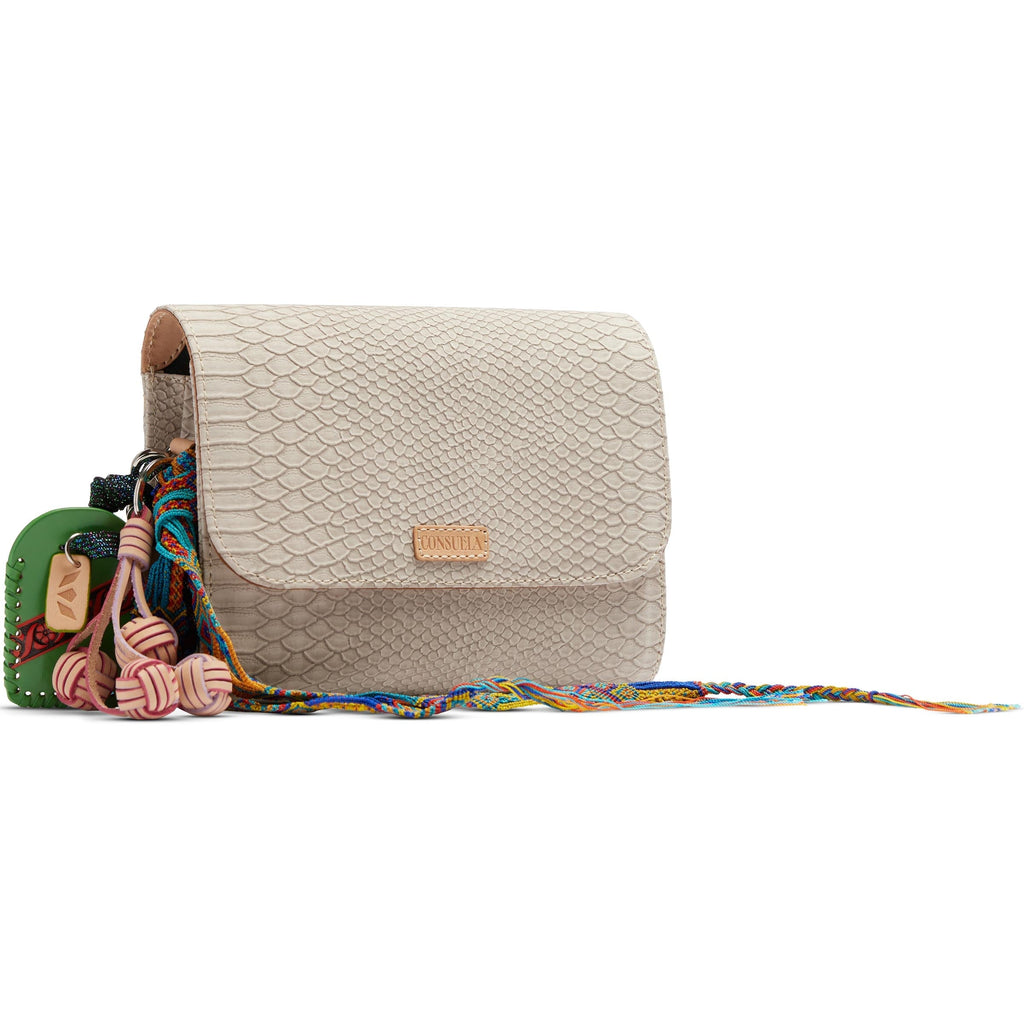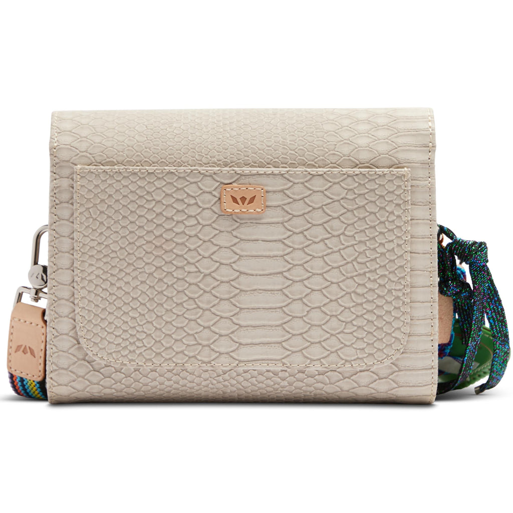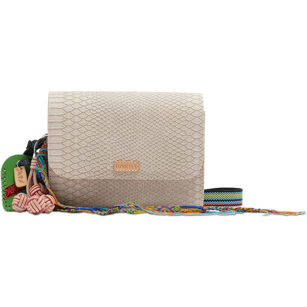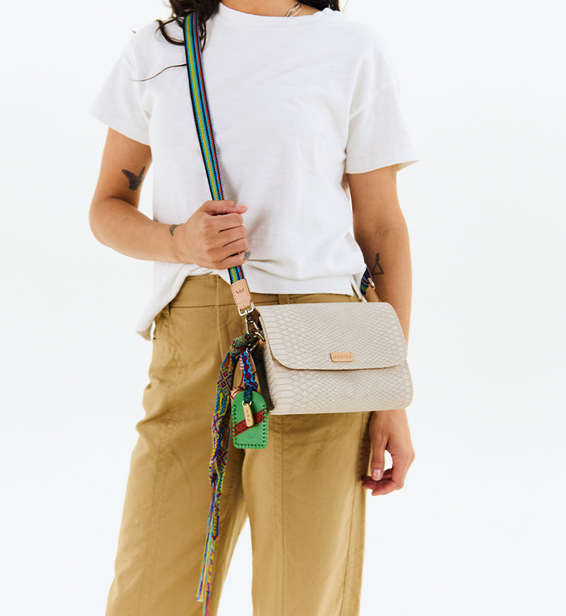 • Adjustable woven crossbody strap