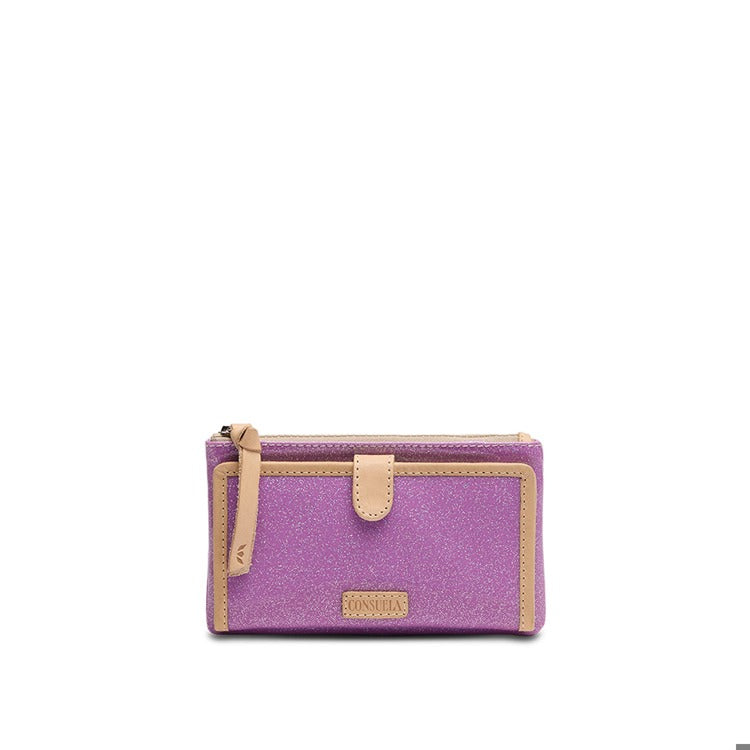 Our Slim Wallet carries cards and cash without weighing you down. Open the snap closure to reveal an ID window pocket, 12 card slots, and 4 slide pocket compartments in this versatile and colorful wallet.