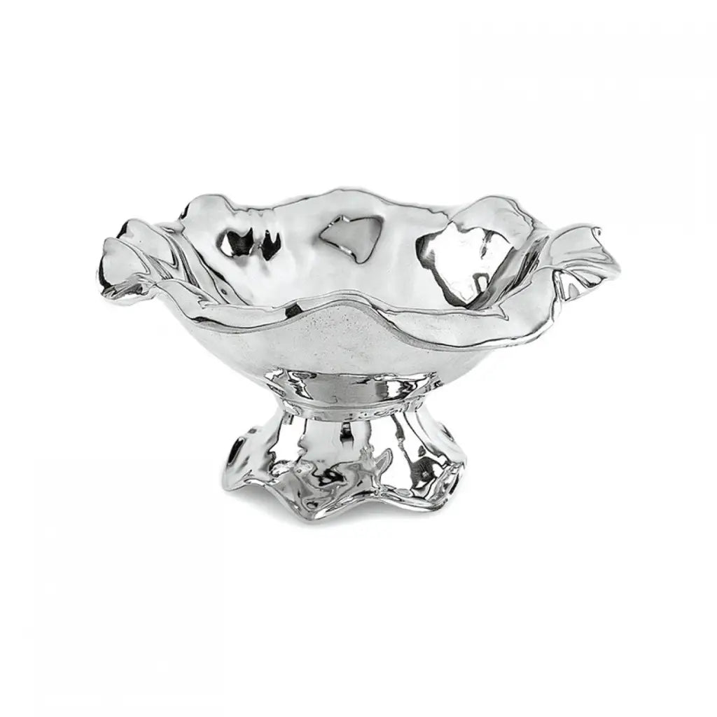 The Beatriz Ball PEDESTAL Vento Alba decorative silver pedestal bowl makes an eye-catching centerpiece filled with seasonal blooms but is also a versatile serving piece for fruit, salads, and desserts.