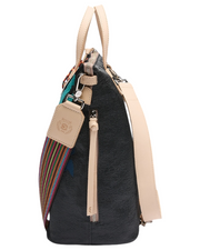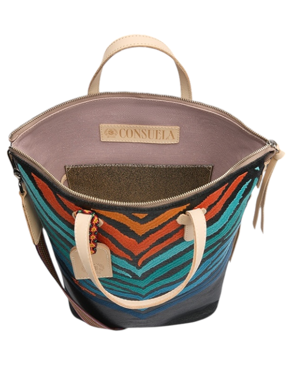 - 10 ¼” (W at the base), 14 ½” (W at the top) x 13” (H) x 6 ¾” (D), 13”-22 ¾” adjustable crossbody strap drop