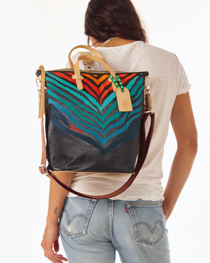 Intentionally designed for versatility, the Sling bucket bag can be worn three ways: as a crossbody, over the shoulder, or carried by its leather handles. Organize your essentials in this embroidered bucket bag with its interior pockets and key lanyard to keep life laid-back and hands-free.