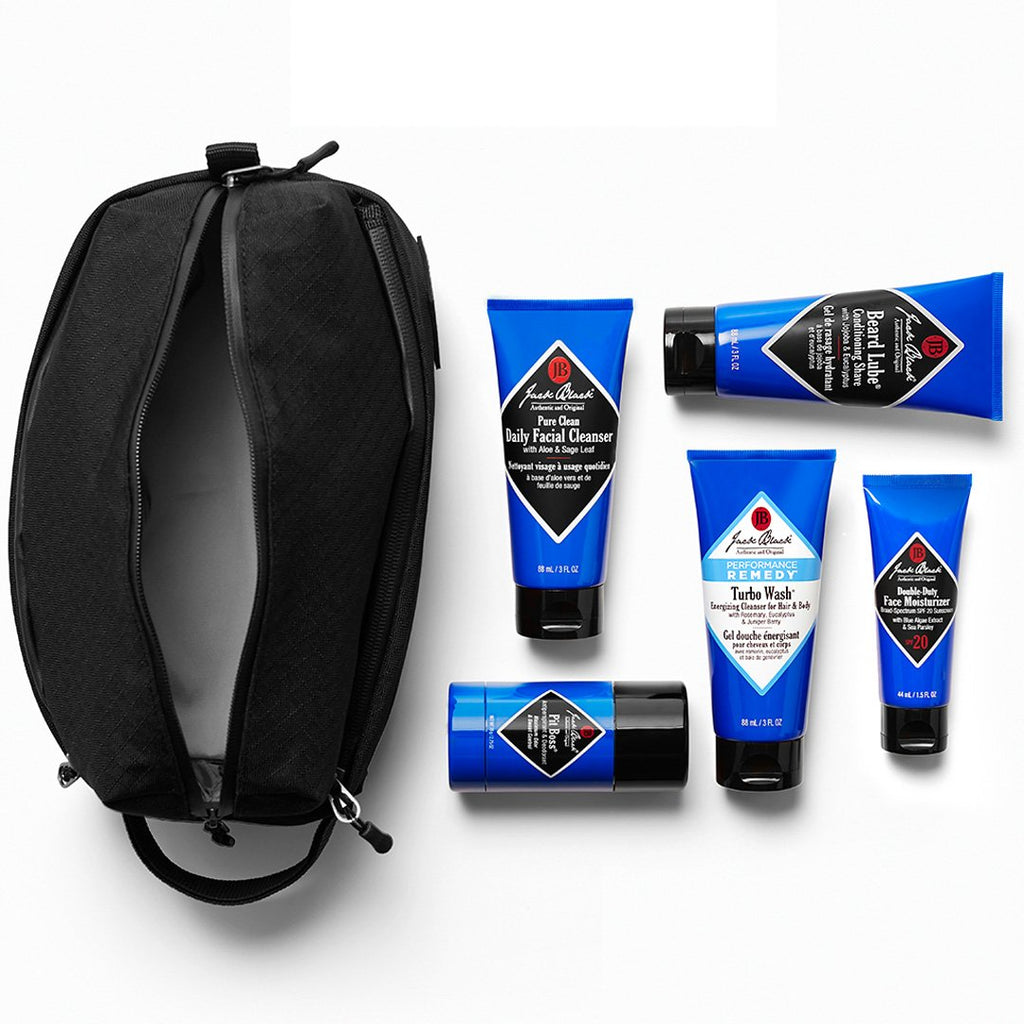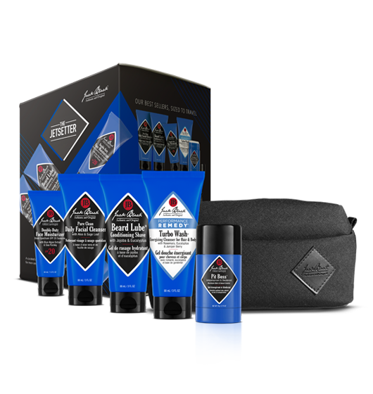 All the essentials for the modern jetsetter: THE JETSETTER includes Double-Duty Face Moisturizer SPF 20, Pure Clean Daily Facial Cleanser, Beard Lube® Conditioning Shave, Turbo Wash® Energizing Cleanser for Hair & Body, and Pit Boss® Antiperspirant & Deodorant, and comes in a stylish, durable travel bag. Perfect for the man who travels in sophistication and style.