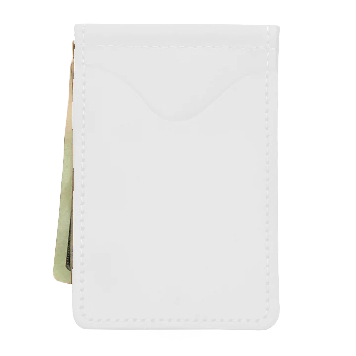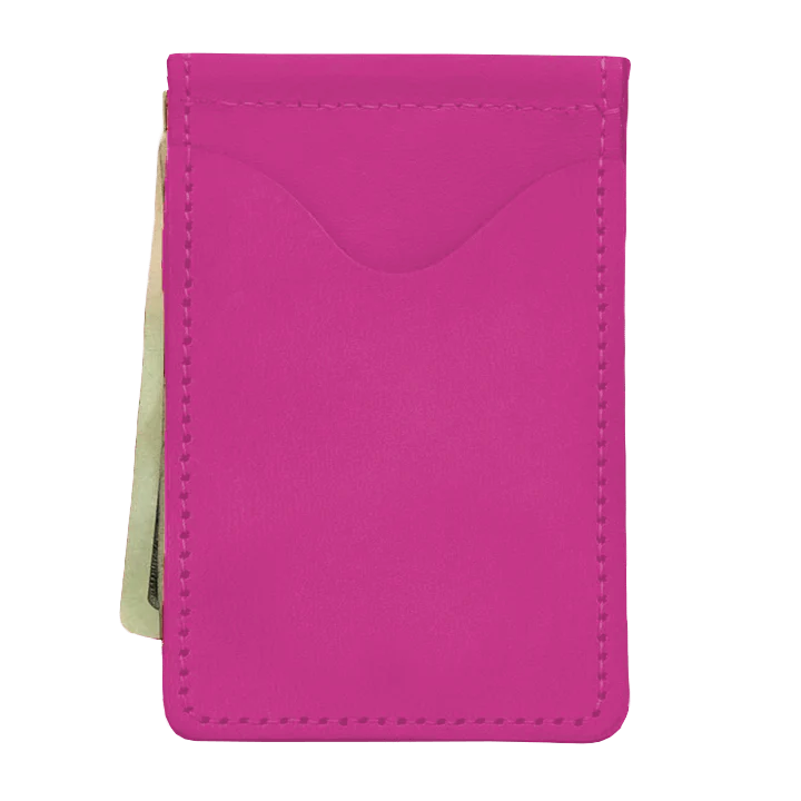 Our all leather money clip which securely holds all your bills and credit cards. Its sleek look makes it easy to carry in your pocket or in a purse.