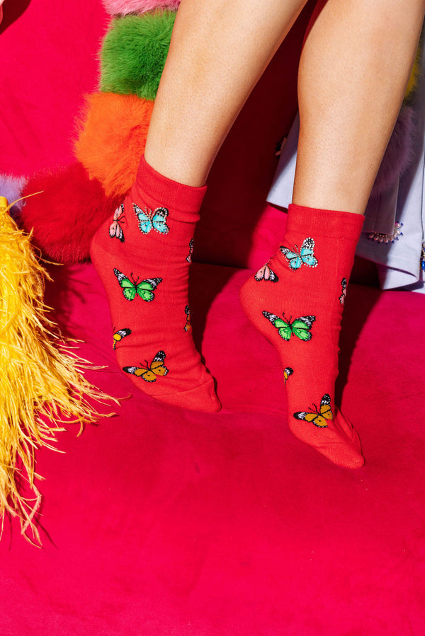 Queen of Sparkles - Red Butterfly Socks - O/s / Sum24603