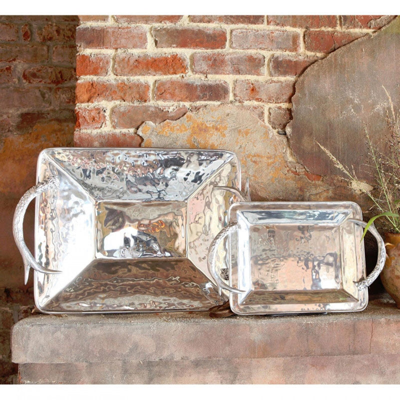 A functional showpiece, the Beatriz Ball WESTERN antler extra large decorative metal tray features sloping sides and generous proportions to corral enough food for any crowd.