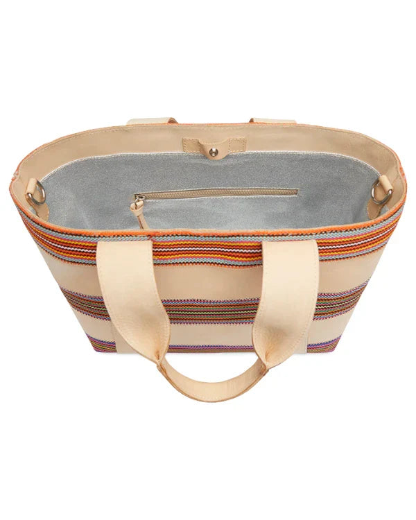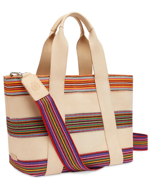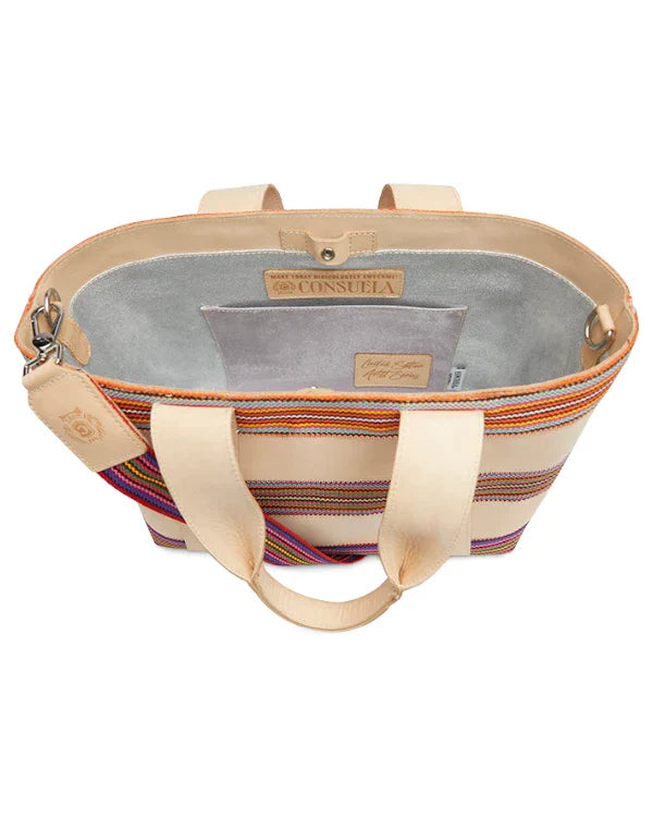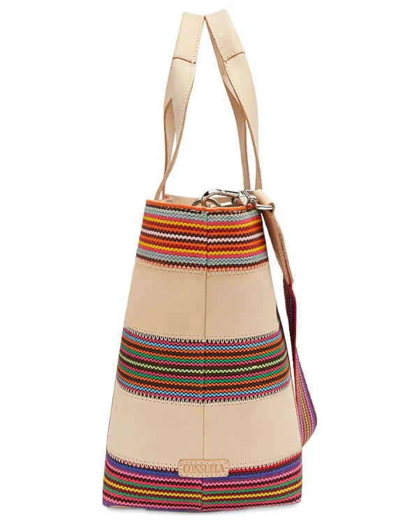 - 13 ¼” (W at the base), 17 ½” (W at the top) x 10 ½” (H) x 6 ½” (D), 7 ½” handle drop or 16 ½“-28” adjustable crossbody strap drop
