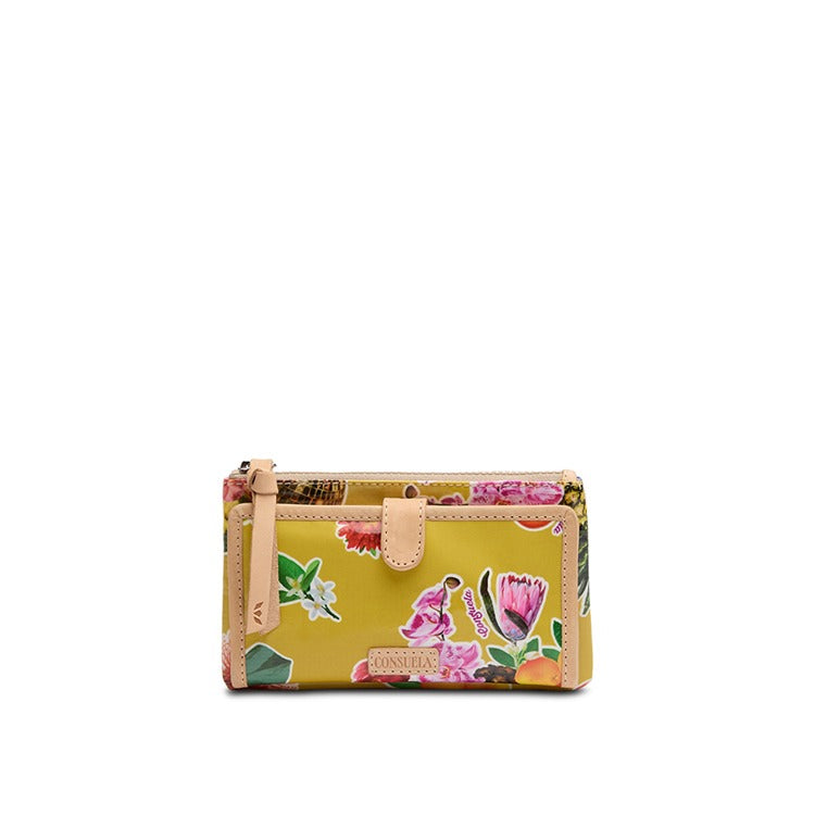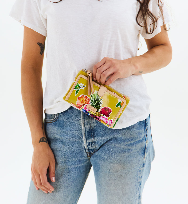 Our Slim Wallet carries cards and cash without weighing you down. Open the snap closure to reveal an ID window pocket, 12 card slots, and 4 slide pocket compartments in this versatile and colorful wallet.