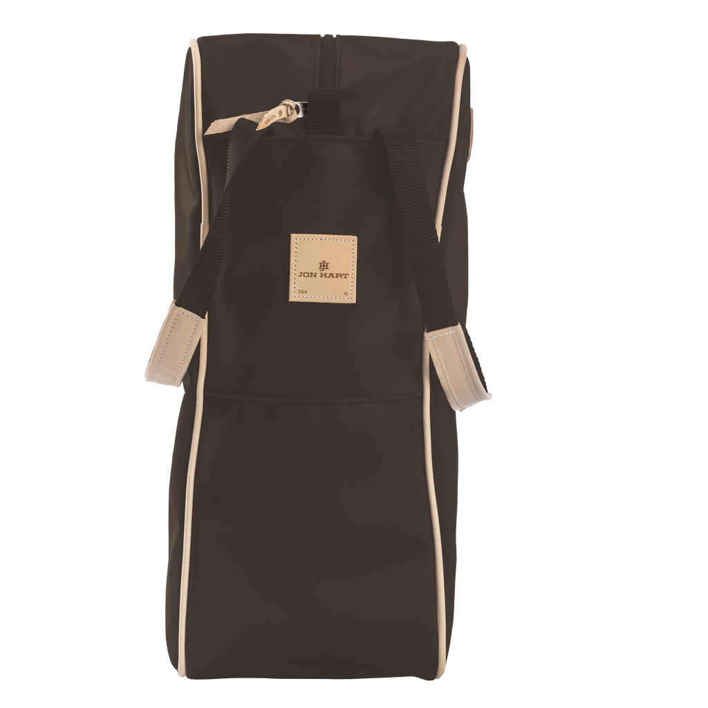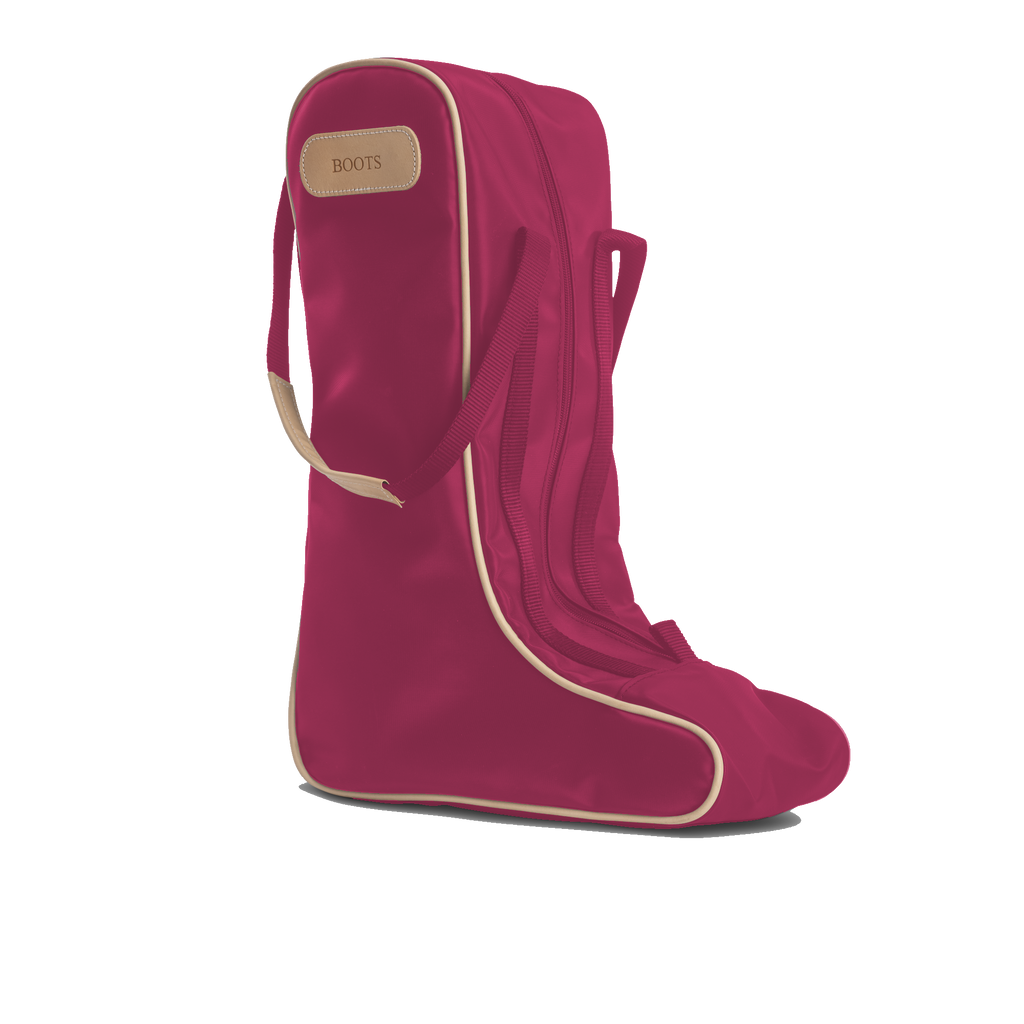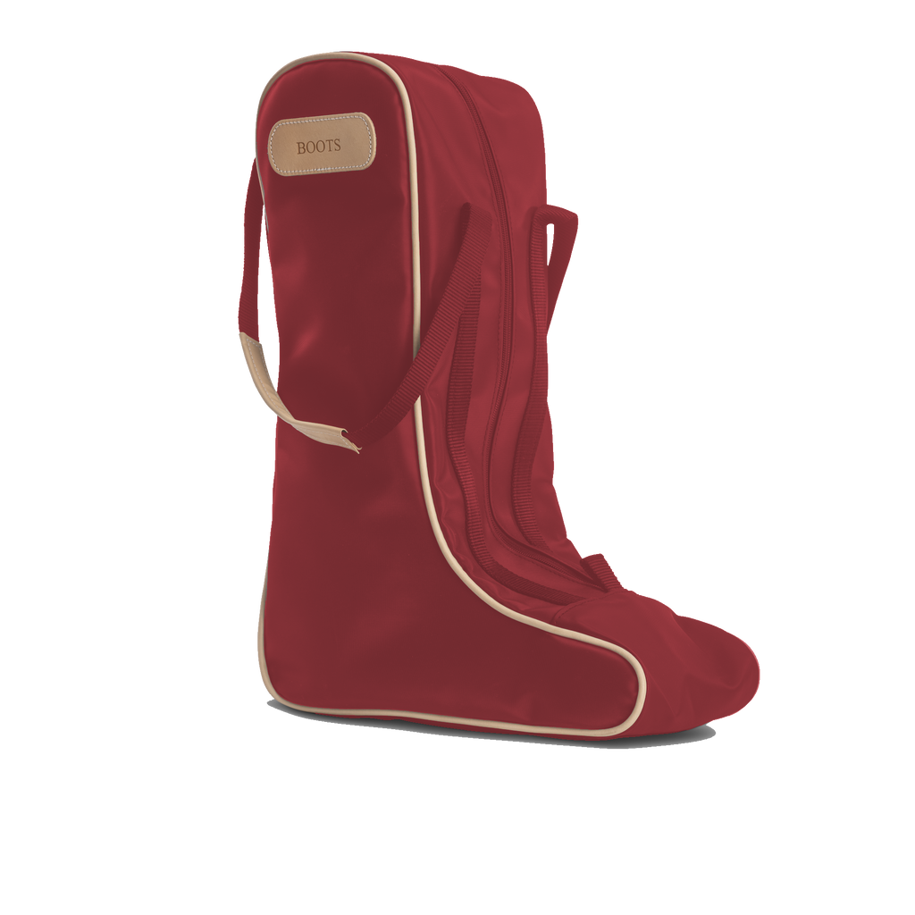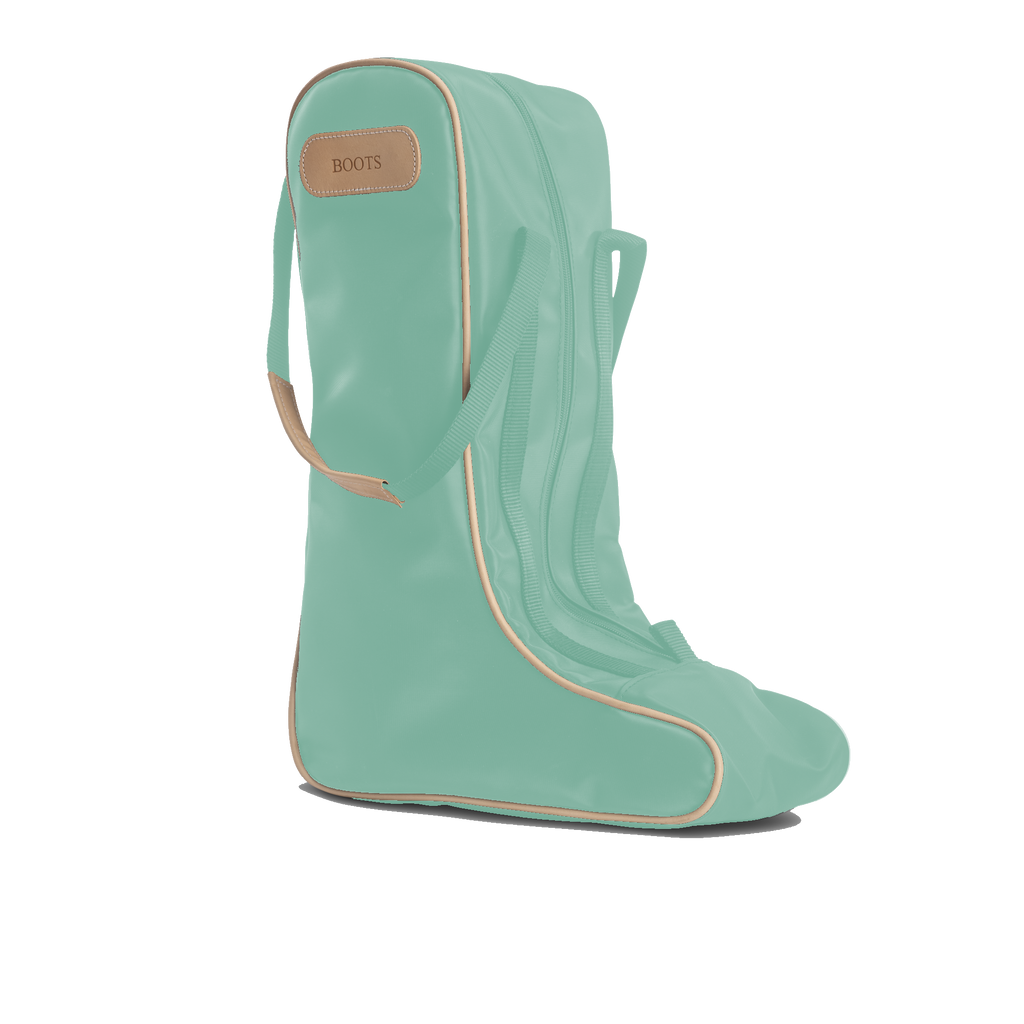 Coated canvas with Natural Leather trim. Holds up to a size 14 boot.